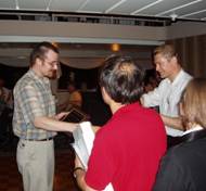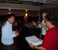 Norman Poh receiving the best poster award from Dr. Paul Griffin, CTO, Identix. |