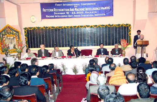 The inaugural session was chaired by Prof. Sankar K. Pal, Director of the Indian Statistical Institute and General Chair of the conference, who welcomed the delegates. He also gave an introduction and objective of the conference. The Hon’ble Chief Minister of the Government of West Bengal, Mr. Buddhadeb Bhattacharjee, inaugurated the conference. Prof. Andrzej Skowron, Warsaw University, Warsaw, Poland, was the Chief Guest, and Prof. Sanjit K. Mitra, University of California, Santa Barbara, USA was the Guest of Honor of the function. During the session, Mr. Bhattacharjee told about the IT policies of the Government of West Bengal. This was followed by the speeches of Prof. Malay K. Kundu, Prof.-in-Charge, CCSD, ISI and Industrial Liason of PReMI’05, Prof. Skowron, Prof. Sanjit Mitra, and Prof. Sushmita Mitra, Program Chair of PReMI’05. The session was ended with the Vote of Thanks by Prof. C. A. Murthy, Head, MIU of ISI and Organizing Chair of PReMI’05.