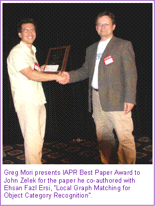 The CRV conference series provides a high-quality forum for the Canadian and International Computer and Robot Vision communities to share their work. As usual, our conference was sponsored by CIPPRS/ACTIRF (Canadian Image Processing and Pattern Recognition Society/Association Canadienne de Traitment d'Images et de Reconnaissance des Formes) and endorsed by IAPR (International Association for Pattern Recognition). CIPPRS/ACTIRF is a special interest group of the Canadian Information Processing Society (CIPS) and is the official Canadian member of the Governing Board of the IAPR. The goal of CIPPRS/ACTIRF is to promote research and development activities in Computer Vision, Robot Vision, Image Processing, Medical Imaging and Pattern Recognition. We were delighted to present our distinguished invited speakers Dr. Martial Hebert of Carnegie Mellon University, Dr. Larry Matthies of the NASA Jet Propulsion Laboratory and Dr. Michael Black of Brown University. These excellent researchers perfectly represent the combination of computer and robot vision that is the unique flavor of this conference series. The papers that appeared were each reviewed by at least two reviewers from a 60 member program committee comprised of internationally recognized vision and robotics researchers. This year we received a total of 102 submissions, of which 26 papers were accepted for oral presentation (25 percent), while another 31 papers were accepted as poster papers (30 percent). At the conference banquet, we were pleased to present four paper awards: ¨ Yehia T. Kotb, Steven S. Beauchemin, and John L. Barron received the Best Robotics Paper award for their paper titled "Petri Net-Based Cooperation in Multi-Agent Systems." ¨ Vincent Chapdelaine-Couture and Michael Langer received the Best Vision Paper award for their paper titled "Can Lucas-Kanade be used to estimate motion parallax in 3D cluttered scenes?" ¨ The IAPR Best Student Paper award was given to Mohand Said Allili, Nizar Bouguila and Djemel Ziou for their paper "Finite Generalized Gaussian Mixture Modeling and Applications to Image and Video Foreground Segmentation." ¨ The IAPR Best Paper award for CRV 2007 went to Ehsan Fazl Ersi and John S. Zelek for their paper "Local Graph Matching for Object Category Recognition." In addition, Steven Beauchemin from The University of Western Ontario received the CIPPRS award for research and service. We thank the IAPR for their sponsoring these paper awards. In addition to the main paper and poster sessions, our single-track program also featured a special session for the International Workshop on Video Processing and Recognition, organized by Robert Laganiere and Qiang Ji. The Point Grey Research best student paper award for the workshop was presented to Ayman El-Sawah, Chris Joslin, Nicolas D. Georganas, and Emil M. Petriu for their paper "A Framework for 3D Hand Tracking and Gesture Recognition." These conference proceedings were published by the IEEE Computer Society, and will be available on-line through IEEE Xplore and the IEEE/IEE (Institution of Electrical Engineers) Electronic Libraries (IEL). The proceedings are also indexed through the INSPEC indexing service. Thus the papers are highly visible and available, ensuring proper exposure to our authors. Many people collaborated to organize this meeting. We want to thank the members of our program committee for their work in reviewing papers. We gratefully acknowledge and thank Tal Arbel and Gary Gudbranson of Precarn, who did a great job of arranging and synchronizing the co-located conferences, and our publisher Bob Werner of the IEEE Computer Society. We thank CIPPRS Treasurer John Barron at the University of Western Ontario, and CIPPRS President Gregory Dudek for their ongoing guidance and support. Thanks also to last year's CRV co-chair Ioannis Rekleitis for leaving things in good shape. Finally, and crucially, many thanks to the authors who submitted papers, and to the attendees of CRV'07 in the wonderful city of Montreal. We look forward to seeing you at next year's CRV! |