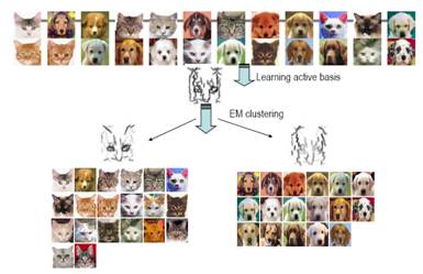 Dr. Zhu showed a wide spectrum of images of various categories from low to high entropy. Low and high entropy categories were seen containing less information. The middle entropy image category contains the most information. He suggests a unified framework to learn a probabilistic model on the space of image patches, intuitively governed by the above observation. Image patches are fundamental elements for object recognition and modeling. Explicit manifold is a low dimensional, low entropy manifold spanned by image patches generated from the primitive model which involves hidden variables. Implicit manifolds are formed by image patches that share feature statistics. Implicit manifolds have high entropy. Implicit manifolds are specified by Markov Random Fields. Hidden variables for explicit manifolds and feature statistics for implicit manifold were suggested for the unified framework. Kullback-Leibler divergence is used as negative log likelihood for pursuit of explicit and implicit manifolds. KL divergence is monotonically decreased by information projection to learn a probabilistic model on the space of image patches. Maximin learning principle was presented, claiming that it unifies other known visual modeling. This was followed by case studies and results. |