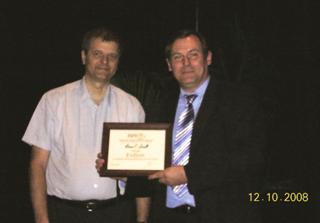 IAPR Past President Karl Tombre, IAPR Fellow, presents an IAPR Fellow plaque to IAPR President Brian Lovell at ICPR2008.