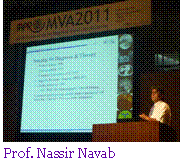 The Twelfth IAPR Conference on Machine Vision Applications (MVA2011) was co-sponsored by the MVA Organization, IAPR TC-8, and the Nara Institute of Science and Technology. The venue was Nara Centennial Hall at the center of Nara city. The oral sessions were held in Harmony Hall, with a capacity of over 400; the posters were presented in the foyer around the conference room. In the hall and room for the presentations, wireless network was provided to all the participants. In spite of the disaster that struck Japan in March, 2011, there were 217 participants from 29 countries. The topics of the conference were algorithms and architectures of machine vision applications. From 208 submissions, 36 oral presentations and 108 poster presentations were selected. In addition to the accepted papers, there were three IAPR invited talks: “Model Guided Multimodal Imaging and Visualization for Computer Assisted Interventions” by Prof. Nassir Navab of the Technical University of Munich, Germany; “Behavior Imaging: Using Computer Vision to Study Autism” by Prof. James M. Rehg of the Georgia Institute of Technology, USA; and “Stereo Vision System on Automobile for Collision Avoidance” by Prof. Keiji Saneyoshi, of the Tokyo Institute of Technology, Japan. The first MVA workshop was held in Tokyo in 1988, and at every MVA conferences after MVA’98, the Most Influential Paper over the Decade Award is given to the authors of papers appearing in the conference 10 years earlier which have been recognized as having had the most significant influence on machine vision technology over the subsequent decade. At MVA2011, three papers presented at MVA2000 were selected for this award: · “Dense Disparity Map Estimation Respecting Image Discontinuities: A PDE and Scale-Space Based Approach” by Luis Alvarez, Rachid Deriche, Javier Sanchez, and Joachim Weickert; · “Radial Distortion Snakes” by Sing Bing Kang. · “Optimized Camera Viewpoint Determination System for Soccer Game Broadcasting” by Keisuke Matsumoto, Satoshi Sudo, Hideo Saito, and Shinji Ozawa; At MVA2011, a Best Paper Award, Best Application Paper Award, and Best Poster Award were established, and the papers listed below were selected for the awards from those presented at the conference. Best Paper Award "Homogenous Superpixels from Random Walks" by Frank Perbet and Atsuto Maki Best Application Paper Award "A Head-Wearable Short-Baseline Stereo System for the Simultaneous Estimation of Structure and Motion" by Hernan Badino and Takeo Kanade "Fast and Structure-preserving Inpainting Based on Probabilistic Structure Estimation" by Takashi Shibata, Akihiko Iketani, and Shuji Senda Best Poster Award "Fast Combined Separability Filter for Detecting Circular Objects" by Yasuhiro Ohkawa, Chendra Hadi Suryanto, and Kazuhiro Fukui The awards were handed out at the banquet held at Hotel Nikko Nara, which is located just a few minutes walking distance from the conference venue. In addition to the presentations, an exhibition of machine vision-related products was held to stimulate participants and promote their discussions about future research topics of machine vision applications which those products can innovate. Furthermore, a technical tour was held to visit the National Institute of Information and Communications Technology, the Advanced Telecommunications Research Institute International, and the Nara Institute of Science and Technology. The participants enjoyed demonstrations of augmented reality, robot vision, large 3D display without glasses, and so on. The MVA Organization is now planning MVA2013. We wish to once again have a lot of excellent papers and discussions with many researchers from all over the world.. |